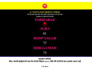 Check the latest Faridabad Result with accurate and real-time updates only on A-7 Satta Fast. Stay ahead with the fastest satta results, daily charts, and expert insights. Our platform provides quick and reliable updates for all major games, helping you track your lucky numbers with ease. Visit A-7 Satta Fast today for the most trusted Faridabad Satta Result and improve your winning chances with timely information and live result tracking.