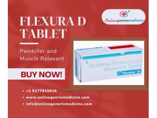Flexura D Tablet is a powerful blend of Diclofenac Potassium and Metaxalone tablets, designed to relieve muscle pain, stiffness, and discomfort. This painkiller and muscle relaxant combination works effectively to reduce inflammation and improve mobility. Ideal for muscle strain or injury relief, it offers fast and lasting comfort. Order Flexura D Tablet online at OnlineGenericMedicine to get trusted quality and affordable prices delivered right to your doorstep. Order Now!
