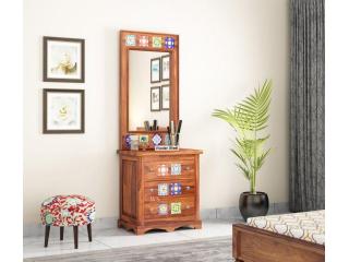 Create a stylish corner in your room with a space-saving dressing table for bedroom. Choose from functional dressing table designs featuring mirrors, drawers, and smart storage. Crafted from durable wood, each piece adds elegance to your space. Discover a wide range of dressing tables online at a great dressing table price only at Wooden Street.