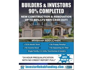 REFINANCE CASH OUT FOR PROPERTIES 90%+ COMPLETED OF RENOVATION OR CONSTRUCTION. INCLUDES NEW CONSTRUCTION PROPERTIES. Use current As-Is Value. Loan amounts from $100,000.00 - $2,000,000.00. Also have refinance with additional rehab funds based on After Repair Value. 12 or 24 monthterm. Close in 15 business days. Single family, 2-4 units, townhomes and condo’s. No Personal Income Verified. No Employment Verified. No prepayment penalty. 24-hour prequalification.